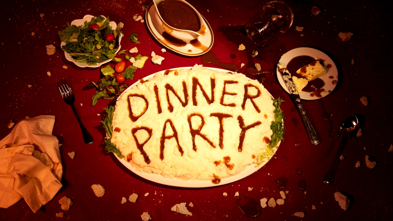 Se puede notar una tortilla con el nombre "Dinner Party". Alrededor hay más comida, haciendo alusión a la trama del episodio.