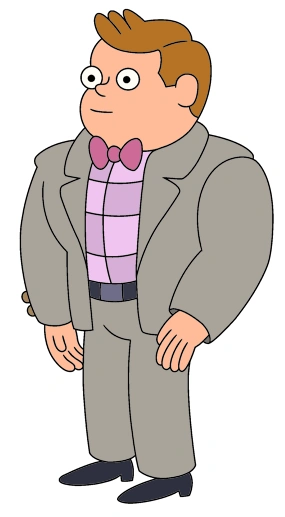 Kevin is shown to be stout (meaning somewhat muscular) built man with light brown hair. He always wearing his purple bow tie.